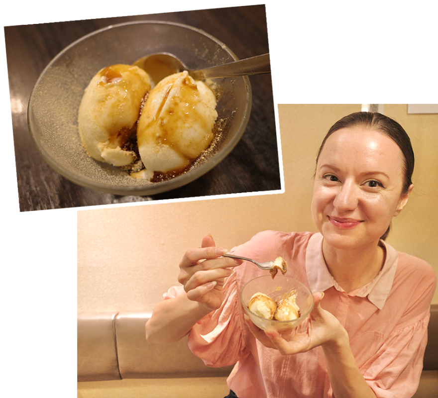 The store manager highly recommends this vanilla ice cream topped with kinako (roasted soybean powder) and kuromitsu (brown sugar syrup). You can enjoy a beautiful fusion of Western dessert and traditional Japanese flavors.