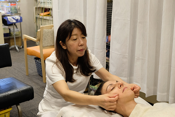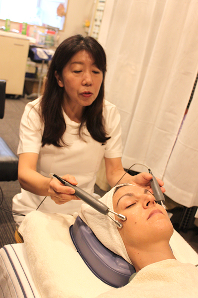 Then, Mrs. Kojima performed a facelift massage. “That’s something you can do by yourself at home. It helps to reduce wrinkles and to smooth away facial lines.”
