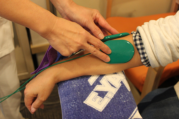 Electrotherapy reduces pain and stimulates the healing process. Electrodes are applied directly on the skin, and that’s it!
