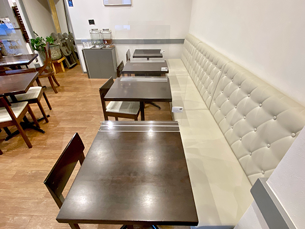 As Ms. Nagai explained, “We originally opened here in 2014, then decided to redecorate the place last year. We made some changes, including our coffee supplier and added some new items to the menu, while retaining those that were popular before.” The cafe is stylish, spacious, and airy, with plenty of room between tables for strollers to enter, while the cream banquette seating wouldn’t be out of place in a Ginza establishment!