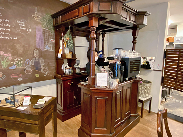 Pride of place goes to this massive coffee stand, a holdover from the previous interior decoration, behind which Ms. Nagai works her magic.