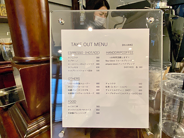 The cake and coffee menu has been revitalised too. Cafe Fleur now serves specialty hand drip coffee such as Coffee Wrights Ampere blend and a unique original created by the renowned specialty coffee roaster Cafe Facon in Nakameguro, Meguro-ku. Cafe Fleur is the only place it’s available, in the entire world! This is the take out menu for drinks and food.
