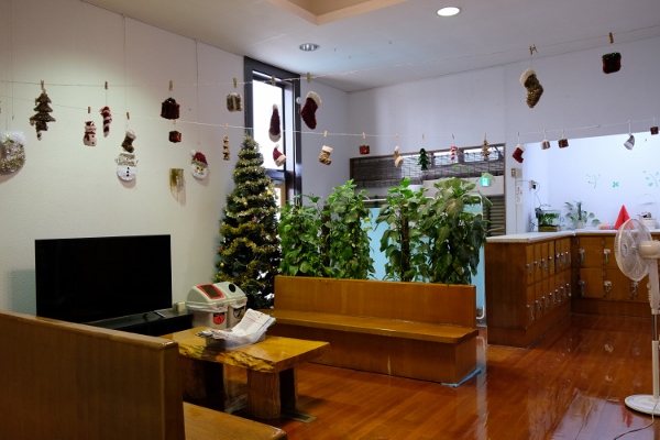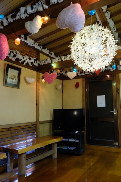 Aside from the lounge, there is also a “resting room” adjacent to the roten-buro, where you can relax and read a magazine (or more manga). The beams along the ceiling are absolutely packed with little towel puppies—a unique creation of the Tatsumi-yu staff who felt the room was not decorative enough before.