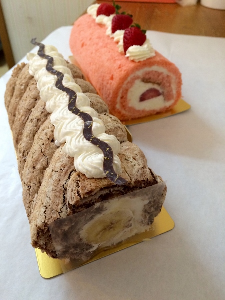 A touch of meringue features in this tempting banana chocolate roll while the strawberry roll is just bursting with fruit and cream. You can buy the whole roll or just a slice to go with your afternoon tea.