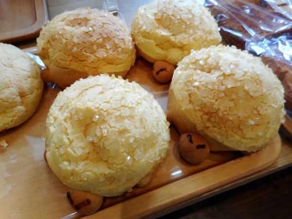 So let’s see what’s been cooking up in this laboratory of baked delights. First up we have the “Kameron pan”, a play on the words “kame” (turtle) and “melon pan” (melon bread), a popular snack in Japan. Though I learned a couple of years ago to my disappointment that there are no real melons involved in making of melon pan (the name comes from the latticed pattern carved into the round bread to make it resemble a melon), I think we can all agree that the lack of turtles in the Kameron pan is a good thing! Instead, this delicious sweet bread pays homage to the Kameido region, which loves all things turtle.