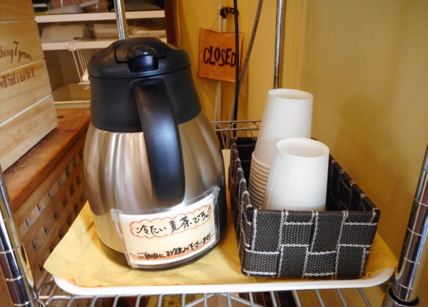 “We want our customers to feel at home,” Mrs. Okamoto said when I commented on it. “It’s getting hot outside, so I think having a bit of cold tea to drink while they shop will be welcoming.”