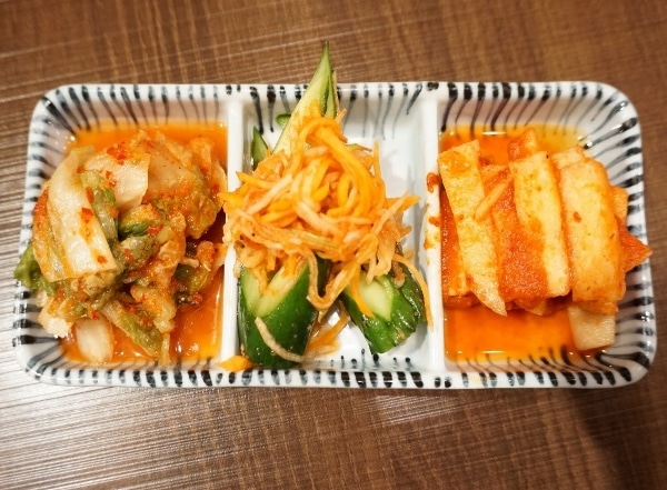 Another essential element of Korean barbeque is kimchi, the spicy and sour Korean dish made of fermented vegetables. Sumibiyakiniku Karubi-tei prepares its own kimchi: Mr. Tanaka’s mother makes this dish from hakusai (Chinese cabbage), whilst Mr. Tanaka himself makes the cucumber and daikon (Japanese giant radish) versions.