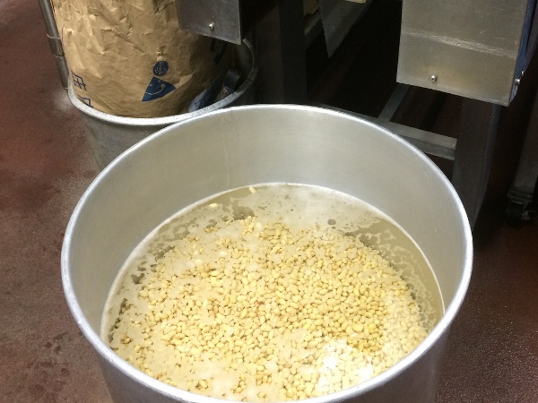 The tofu-maker’s life is a hard one. The beans are delivered fresh in the small hours of the morning and the process is labour intensive, soaking, grinding, rolling and demands constant attention. After making the tofu the machinery has to be cleaned and the whole process begins again. There are only 16 tofu shops still in business in Koto-ku and few make tofu in the traditional way with bittern.