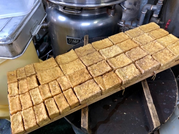 It’s hard work though. “We’re up at 5am every day,” says Mr. Kaneko. “Firstly, I turn the soybeans into soy milk and then make around 200 blocks of tofu (ganso nadai in Japanese).