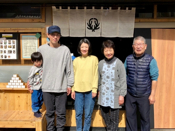 From left: Aoi, the youngest member of the family at four years old, Mr. Kaneko, his wife Kazue, her mother Chiyoko and her husband Toshio, the second-generation proprietor.