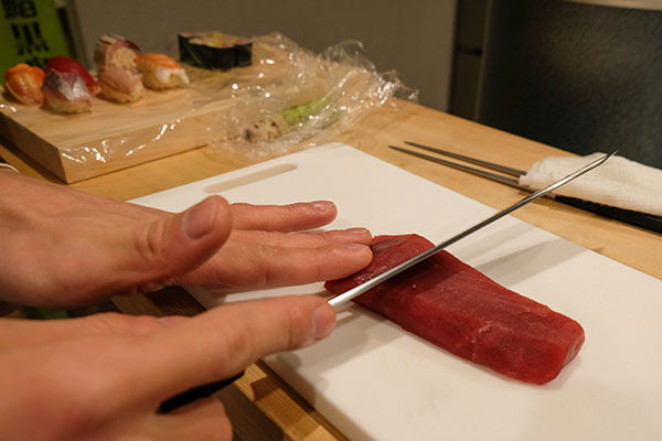 “The sushi rice has a really nice aroma from the red vinegar (akazu) that harmonises beautifully with tuna and bonito,” explained Mr. Ito. “If customers express a preference when ordering I can increase or decrease the amount of rice used in each piece.”