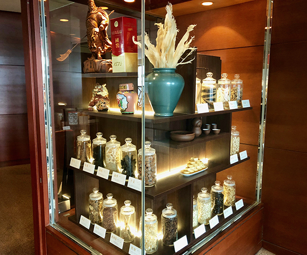 Visitors are greeted by an illuminated display of jars containing some of the more exotic ingredients used by the Totenko chefs.