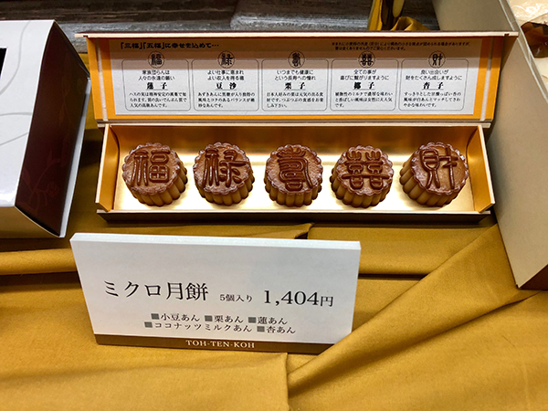 Totenko has a small but exquisite selection of souvenir items. Pandas have been the symbol of Ueno, home of Ueno Zoo, since 1972 and are represented by steamed pork buns and traditional mooncakes.