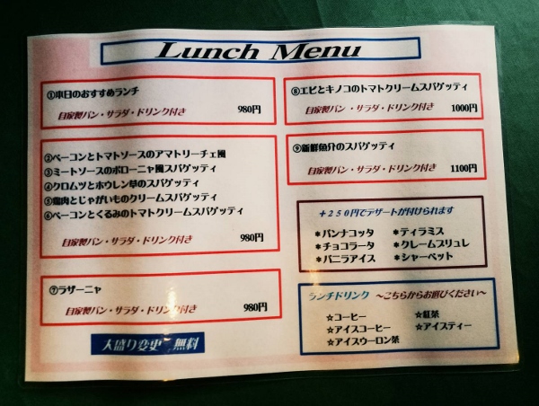 For lunch, the restaurant offers different sets of dishes for a very attractive price of 980 yen. All the sets contain homemade bread and salad. On Saturday and Sunday, the sets change a little bit, offering customers the opportunity to taste more dishes made by Mr. Kawakami.