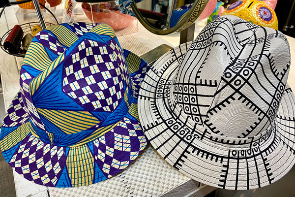 These rather dapper hats were made in South Africa but from West African material.