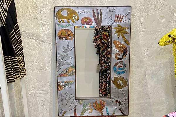 Tucked away amongst the billowing clothes and eye-catching accessories was this stunning beaten metal and riveted mirror, which would brighten up any room. A perfect gift!