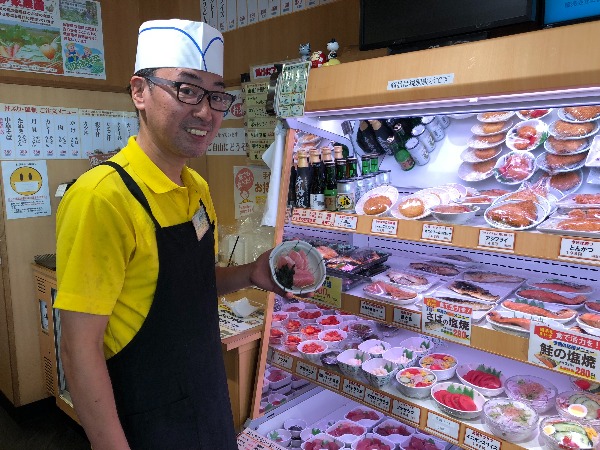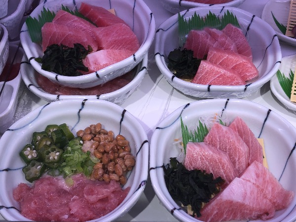 Mr. Tsukada emphasized the importance of combining a variety of dishes into a meal. Fermented foods are widely eaten in Japan and the bowl on the left, which features minced tuna, fermented soy beans (natto) and okra, is just bursting with healthy goodness. Again, it’s incredible value at 378 yen, while the premium quality tuna on the right is just 578 yen. All prices are excluding tax.