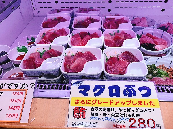 So, what are the most popular items? “Fish,” said Mr. Tsukada without a moment’s hesitation.” In particular, tuna.” Amongst the tuna dishes available the number one bestseller is this sliced tuna at just 280 yen: big, thick chunks of juicy fresh salmon at an unbeatable price. All tuna served at Wagaya no Shokudo comes from Misaki in Kanagawa Prefecture, Japan’s second largest tuna port for tuna.