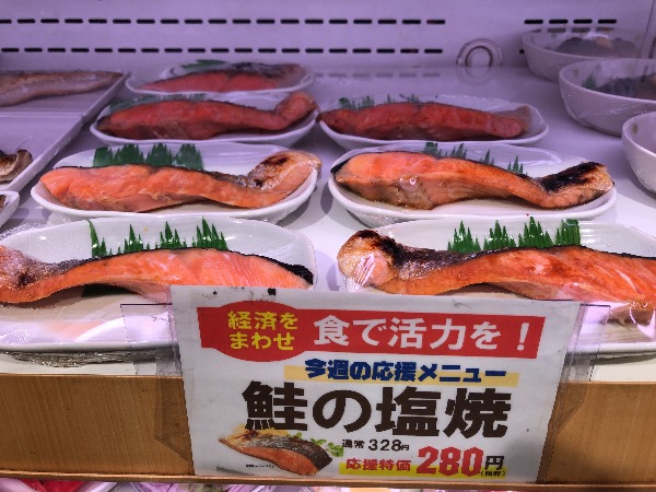 The weekly special was this grilled salmon, down from 328 yen to just 280 yen per piece.