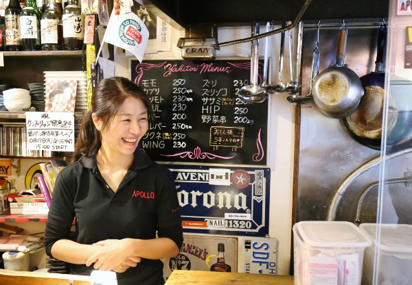 Despite his tough exterior, Yana-san is extremely personable and service-minded. His charisma has drawn people from all walks of life to his store in the 5 years since its establishment, many of them becoming regulars after getting a taste for his yakitori and the warm, companionable atmosphere of APOLLO.