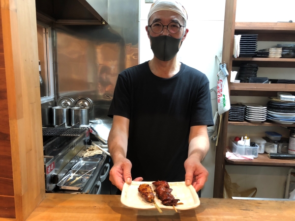 Located on a backstreet between Chuo Street and Suijin Street just north of the station, Yakitori Keichan opened in March 2019, as Mr Shimoda explained. “I’d been working for a yakitori restaurant chain for many years and decided it was time to branch out on my own. I was actually looking for an office space when an estate agent introduced this place to me. I thought it would make a tidy restaurant if it was remodeled, so that’s what I did and opened for business last year.”