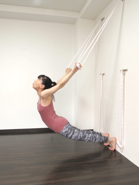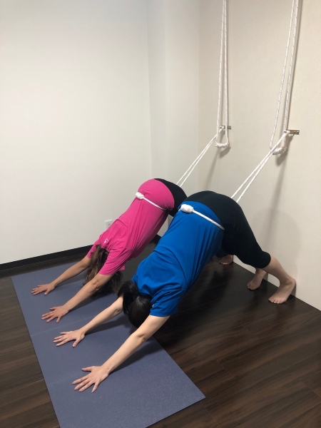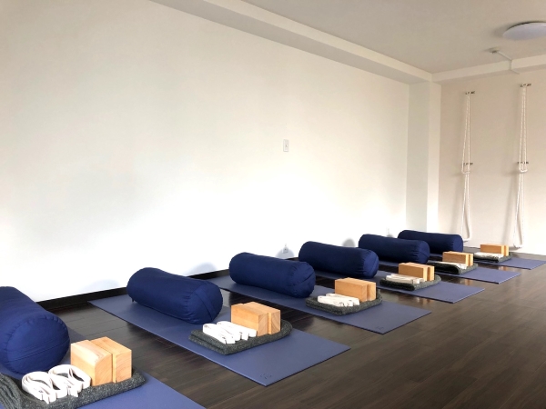 The style of yoga taught by Ms. Kaori and Ms. Yoko, the other instructor (a former professional dancer), uses a variety of props, including chairs, surprisingly heavy wooden blocks, blankets, and the wall ropes. Although the wall rope exercises may look somewhat daunting, they are straightforward and highly recommended for those suffering from text neck or rendered round-shouldered by modern office work. “Our yoga poses are selected so that anyone of any age can do them. They aren’t so difficult and we also can adjust them for each particular individual. It’s very flexibility is the great advantage of yoga,” explained Ms. Mitsui.