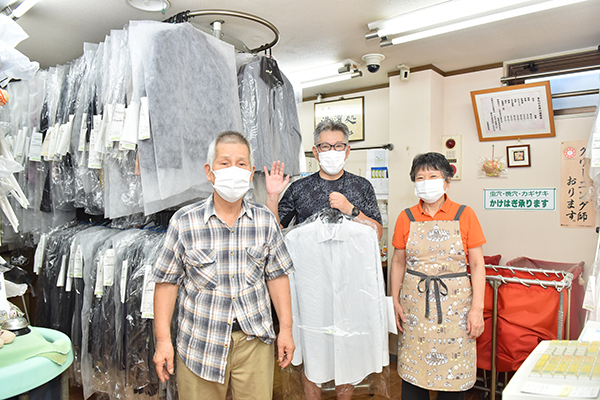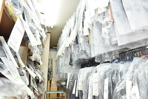 カウンターの後ろには、クリーニングしてきれいに仕上がった洋ふくがいっぱい!