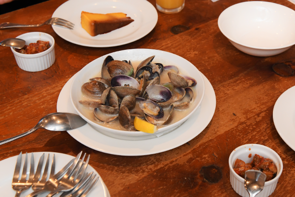 しんせんな魚かいを使ったりょうりです。自家せいのデザートも人気があります。