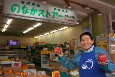 大島六丁目団地にある八百屋さん。目利き店主がこだわって仕入れるのは、一般のお店では手に入りにくい高品質の果物。自宅用や進物用に箱買いする人も!