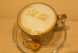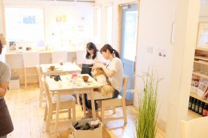 ワンちゃん同伴OKで、一緒に食事ができたり、イベントに参加できたり、なんとも楽しいカフェ。店内のあちらこちらにある「肉球マーク」も探してみて。