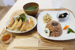 “人と人、人と地域をむすぶ”をテーマにした温かなカフェ。店内は木のぬくもりが心地よく、手作りごはんやスイーツはどれもやさしい味わい。ペット同伴OKの席もあり、散歩途中に立ち寄る常連さんも多いそう。