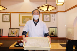 地下室で打った手打ち麺が涼し気です。