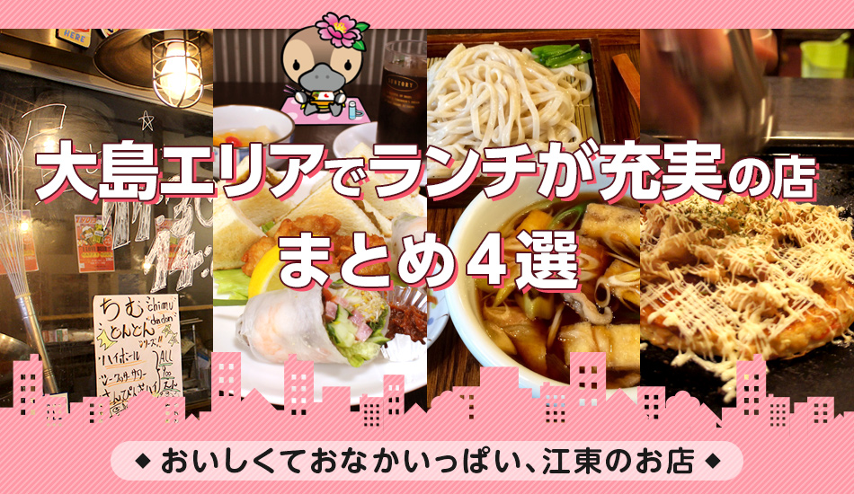 手頃な値段で、味もボリュームも大満足!そんなお店を、江東区の大島エリアにあることみせ登録店から4店舗セレクトしてご紹介します。