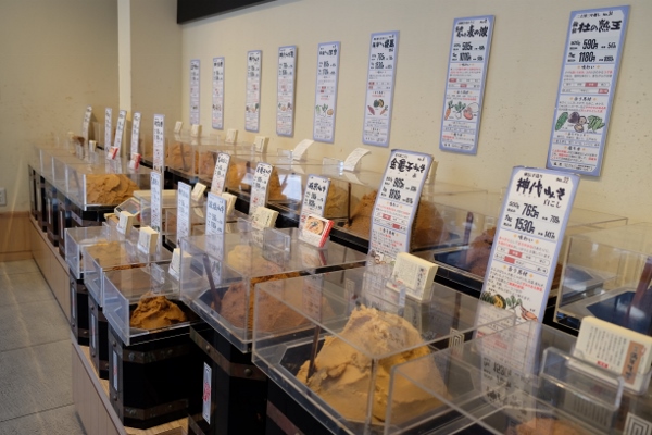 店内には、オリジナル味噌と全国の味噌、合わせて約30種類がずらり!