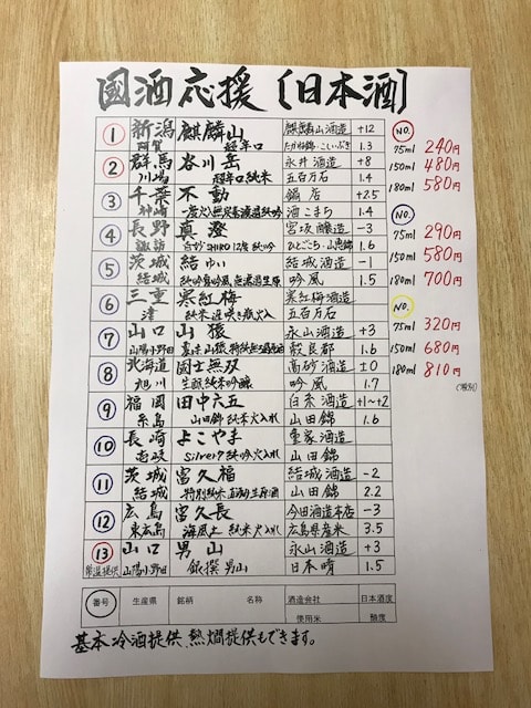 お酒がすすむ料理に合わせて、常時新しい銘柄を入荷している日本酒は15種以上。定番人気の銘酒から、季節酒、レアな限定酒まで、幅広いラインナップです。