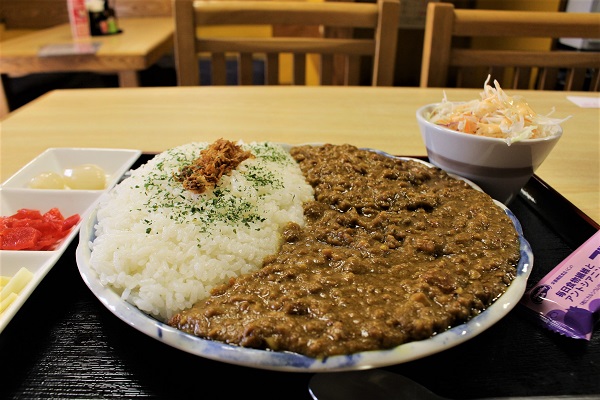 野菜と果物、スパイスの旨みがぎゅっと凝縮したルーに、豚肉がたっぷり。そして大皿からはみ出るほどのこの大容量。これで税込750円だなんて、太っ腹すぎる! ちなみに、小盛も用意しているので(とはいえ小盛でも一般的なお店の普通盛りサイズです)、そんなにたくさん食べられない、という方もご安心を。