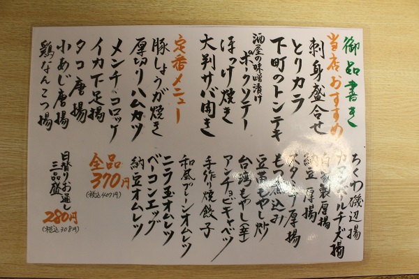 こちらは280円、本日のお通し(水~金の夜限定)