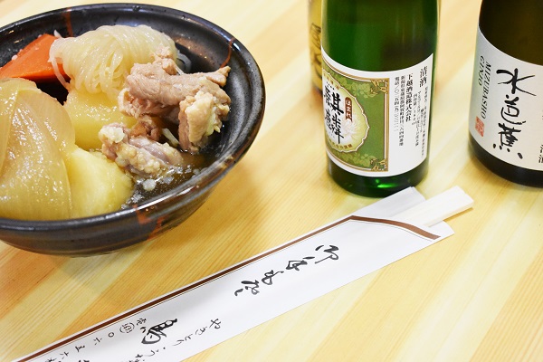 「水芭蕉と譽國光(ほまれこっこう)は群馬のお酒。俺が群馬出身なの」と嬉しそう。味がなじんだホクホク肉じゃがと群馬の日本酒の相性、間違いない!