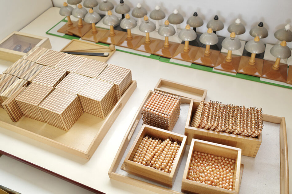 「モンテッソーリ教育」とは、イタリア人初の女医であり科学者であるマリア・モンテッソーリによって確立された教育法です。自ら成長しようとする子どもの自主性や、一人一人の個性を尊重し、発達段階にふさわしい教具、教材が揃えられています。