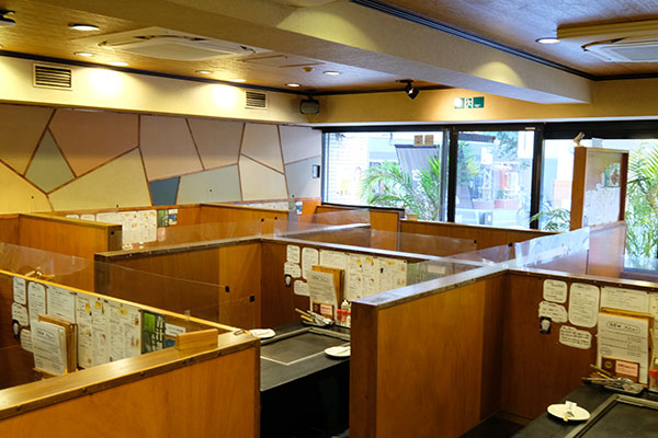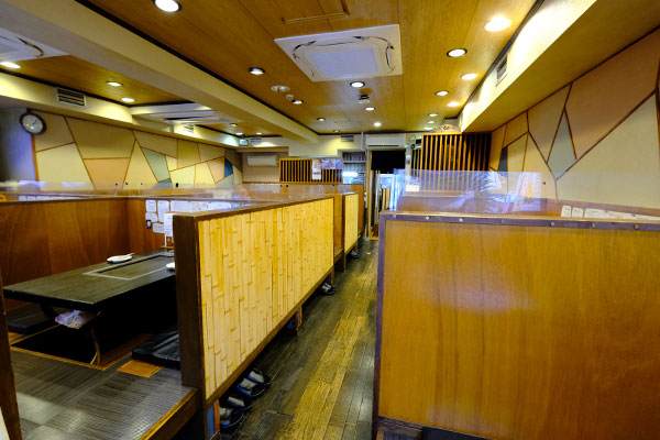 感染予防対策で、仕切りを設けた広い店内。半個室風の椅子席・座敷席なので落ち着いて食事ができると高評価。家族連れに人気というのも納得です。