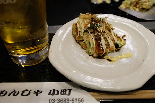 焼くうちに出汁が煮詰まり、味がだんだん濃くなり、食べるごとにコクがうまれて最後までおいしく食べられるのがこの店のもんじゃの特徴。確かに、最初から味が濃いと、最後にしょっぱく感じてきますよね。