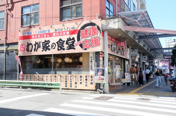 亀戸駅東口から明治通りを北へ約5分、蔵前橋通りの少し手前にある「わが家の食堂 亀戸店」。