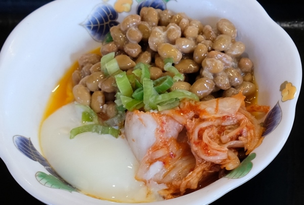 発酵食品・キムチと納豆に栄養価の高いタマゴを組み合わせた、その名も「スパイシースタミナ (188円)」。