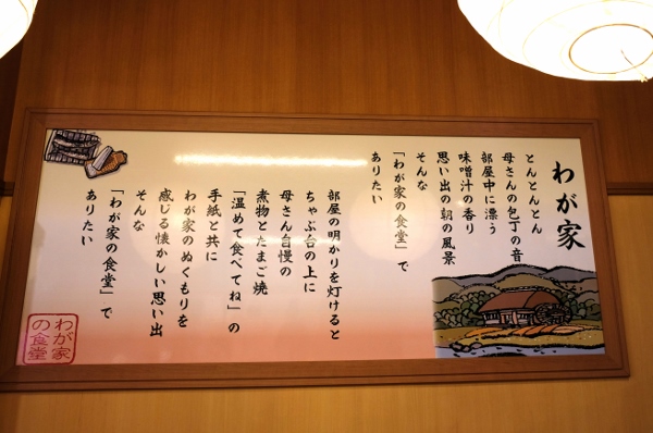 「健康応援」「待たずにすぐ食べられる」「おかえりなさい。お客さんは家族です」「今日のごはん、明日の元気」など、店のコンセプトをうかがい知ることができるキャッチコピーが目を引きます。