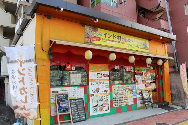 永代通り沿い、日曹橋交差点付近でひときわ目を引くオレンジとグリーンの外観。都内で3店舗を展開するインド料理の名店です。