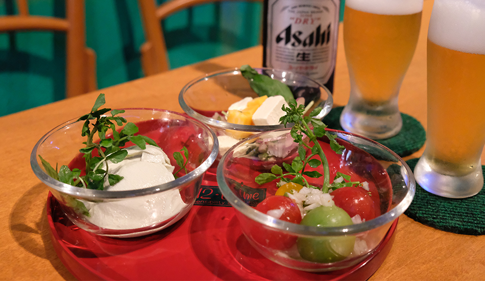 「おつまみが欲しいと言うお客様には作ってお出しします。その日の仕入れにもよるけれど、お客様が飽きないよう、なるべく毎回違うものを作るようにしているの」とのこと。