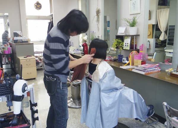 「33年この場所でやっていますから、親子3代でいらしてくださるお客様も多いですね」とスタイリストの野島さん。カットの施術を受けているお客様はご近所に住む常連さんで、ご家族の方もこちらに通っているそうです。
