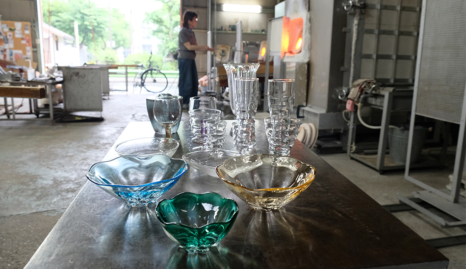 吹きガラス作家・熊谷正行さんと角岡磨さんが設立した吹きガラス工房で、作品作りの他、教室や体験制作など、吹きガラスの魅力を伝える活動もしています。