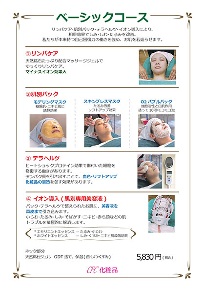 4つの施術を組み合わせることで、お肌の悩みを改善するベーシックコースのお値段は、メンバーの方は5,830円、フリーの方は7,150円。メンバーになるための登録料は19,500円です。