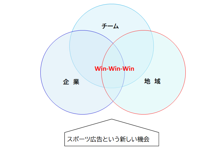 具体的に言うと、プロのスポーツチームやアスリートがユニフォームにスポンサー名を入れたりしますね。それを街のチームにも取り入れることで、企業はPRになり、チームは支援によって用具や設備が充実し強化につながります。